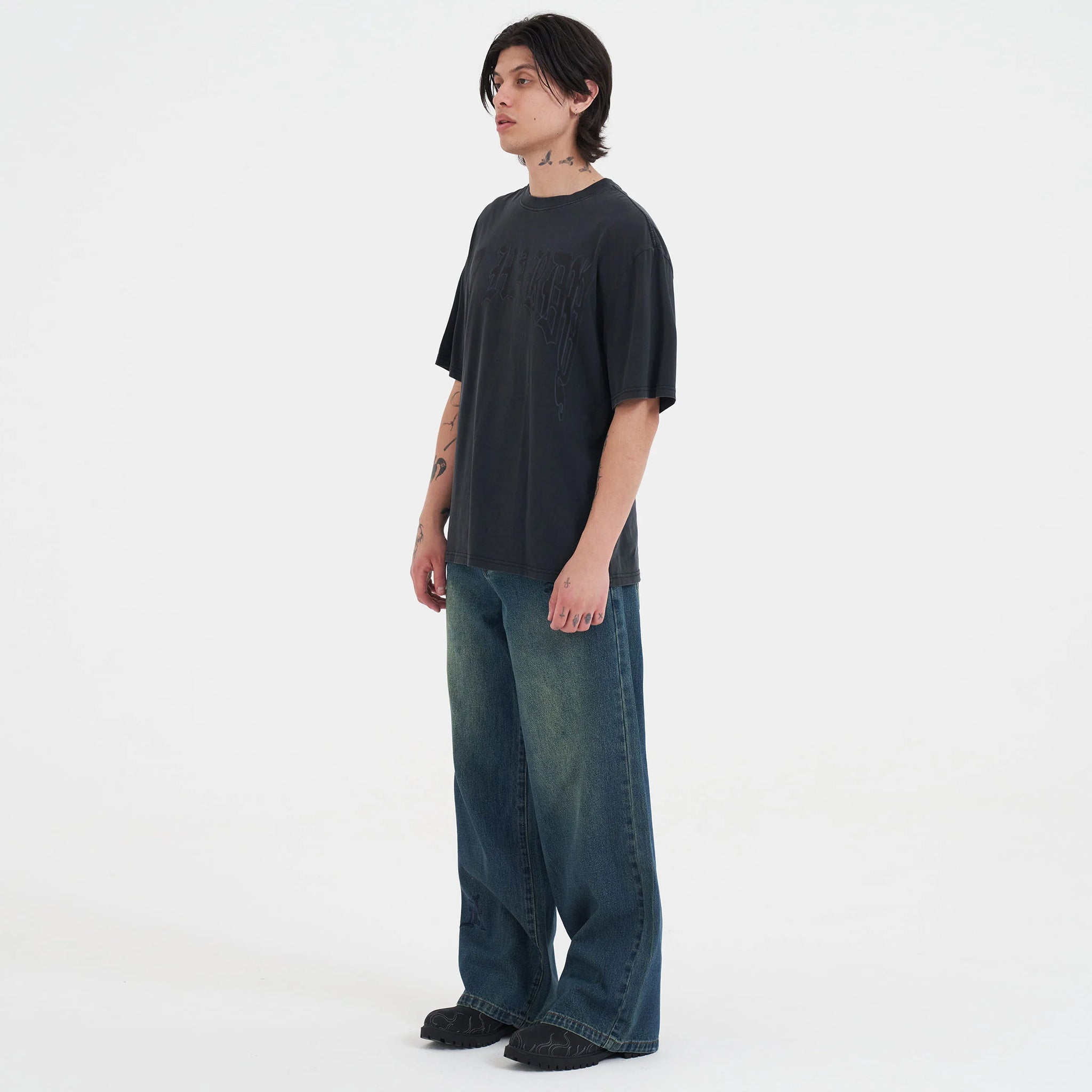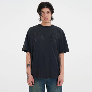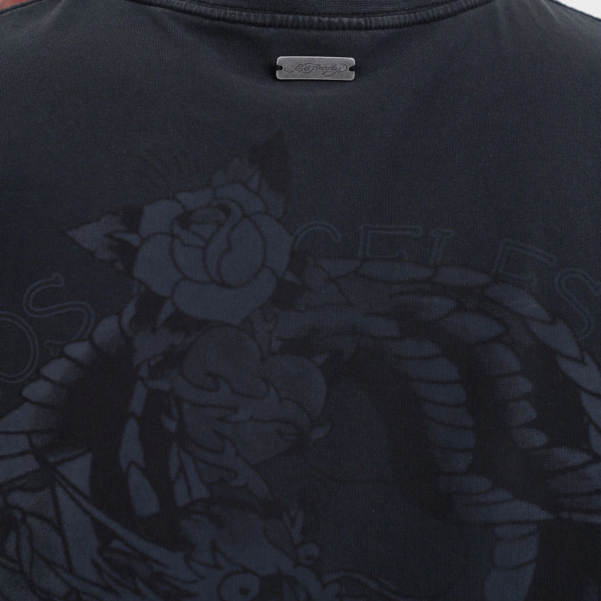 The Scorpion Dragon Battle Relaxed T-Shirt in Charcoal combines bold style with comfortable wear. Featuring a striking Ed Hardy tattoo graphic at the front and a dynamic dragon design on the back, this shirt makes a strong statement. Made from 100% garment-dyed cotton, it offers a soft feel and a relaxed fit for everyday comfort. The branded metal tab at the center back neck adds a subtle, quality detail to complete the look. Perfect for those who want to express their unique style while staying comfortable throughout the day.