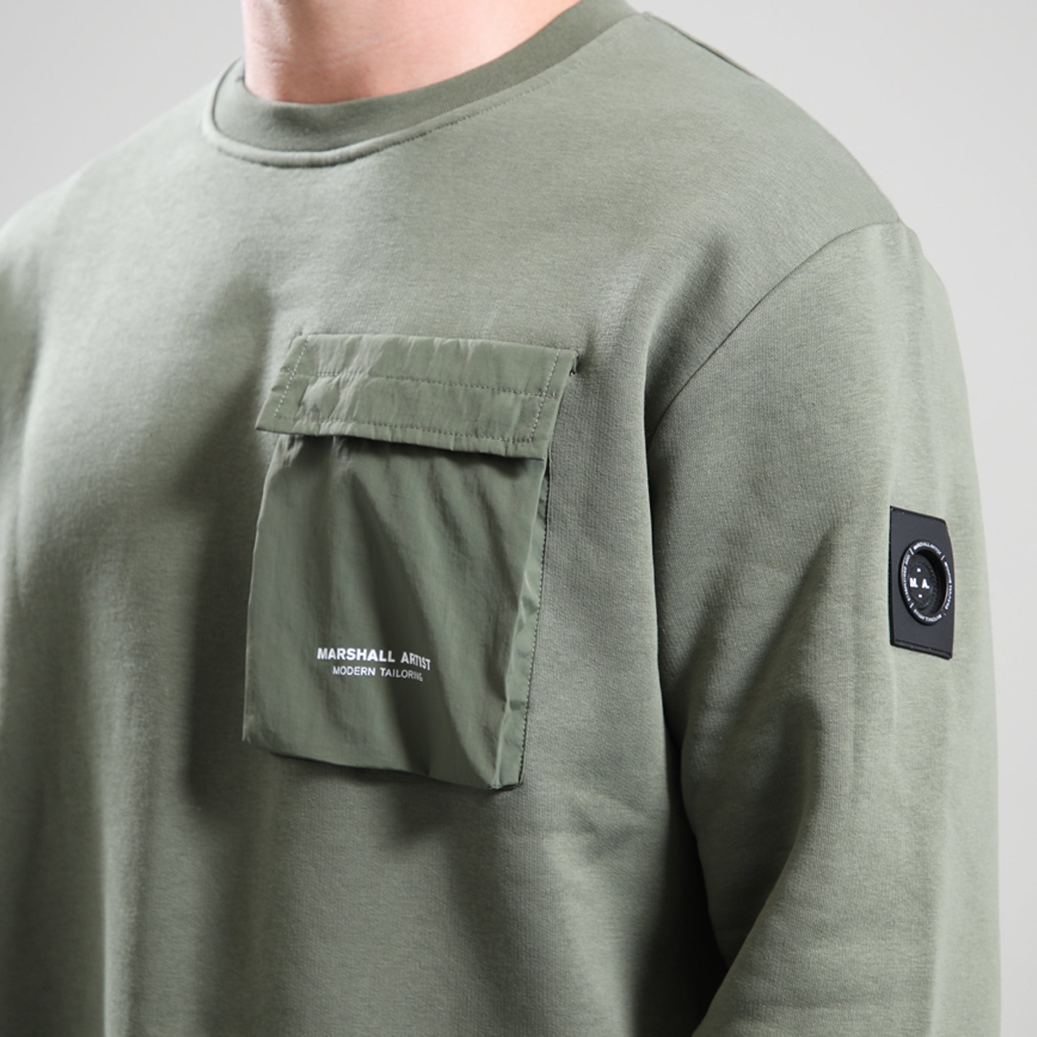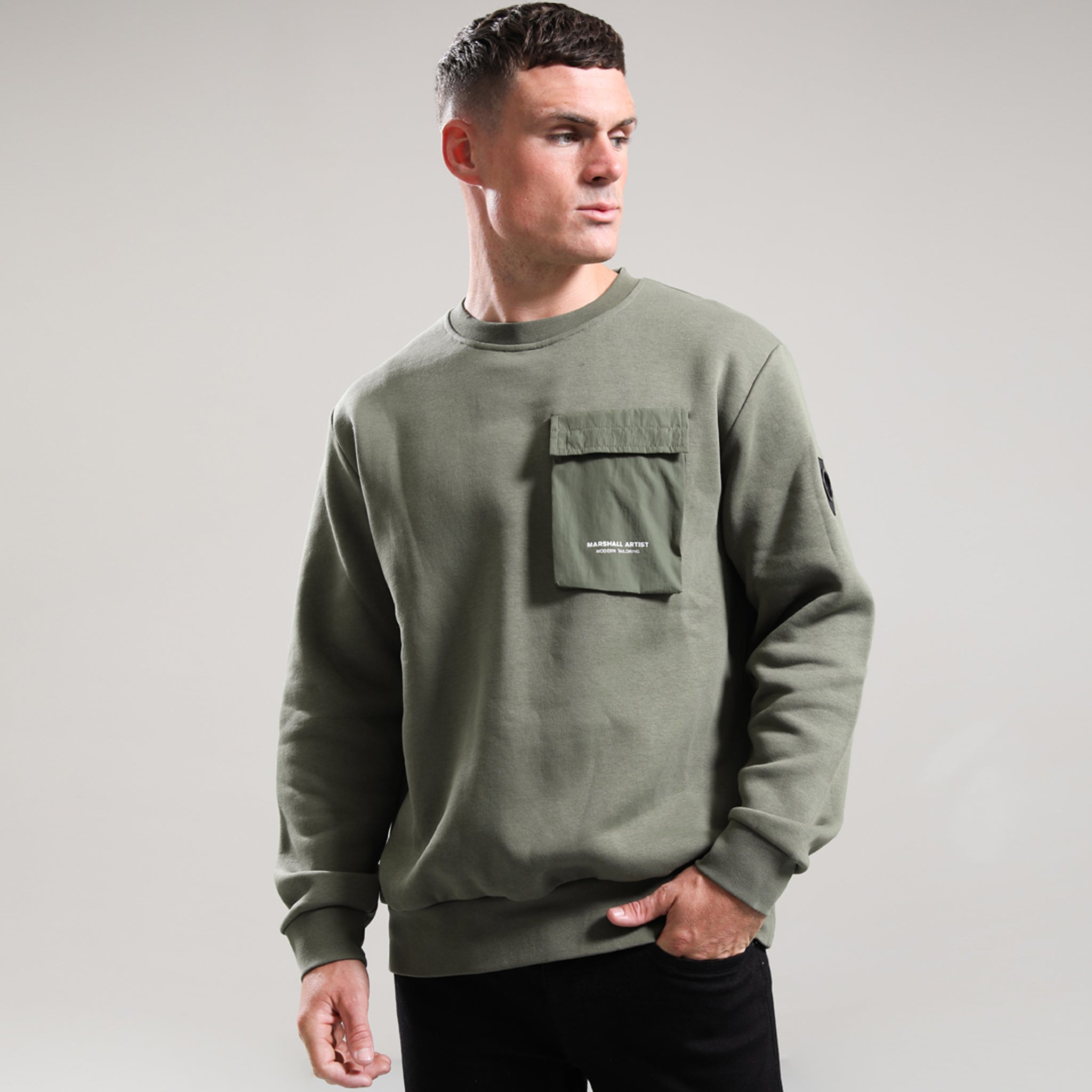 Elevate your everyday wardrobe with the Crux Pocket Sweatshirt, a versatile essential designed for comfort and style. Crafted from a premium 80% cotton and 20% polyester blend at 320 GSM, this crew neck sweat offers substantial weight and durability. The standout feature is the textured crinkle nylon chest pocket finished with the Marshall Artist printed logo, adding visual interest to a clean silhouette. Reinforced with flat-lock stitching at the seams for lasting quality and a regular fit that works for most body types, this sweatshirt transitions seamlessly from casual outings to relaxed weekends.