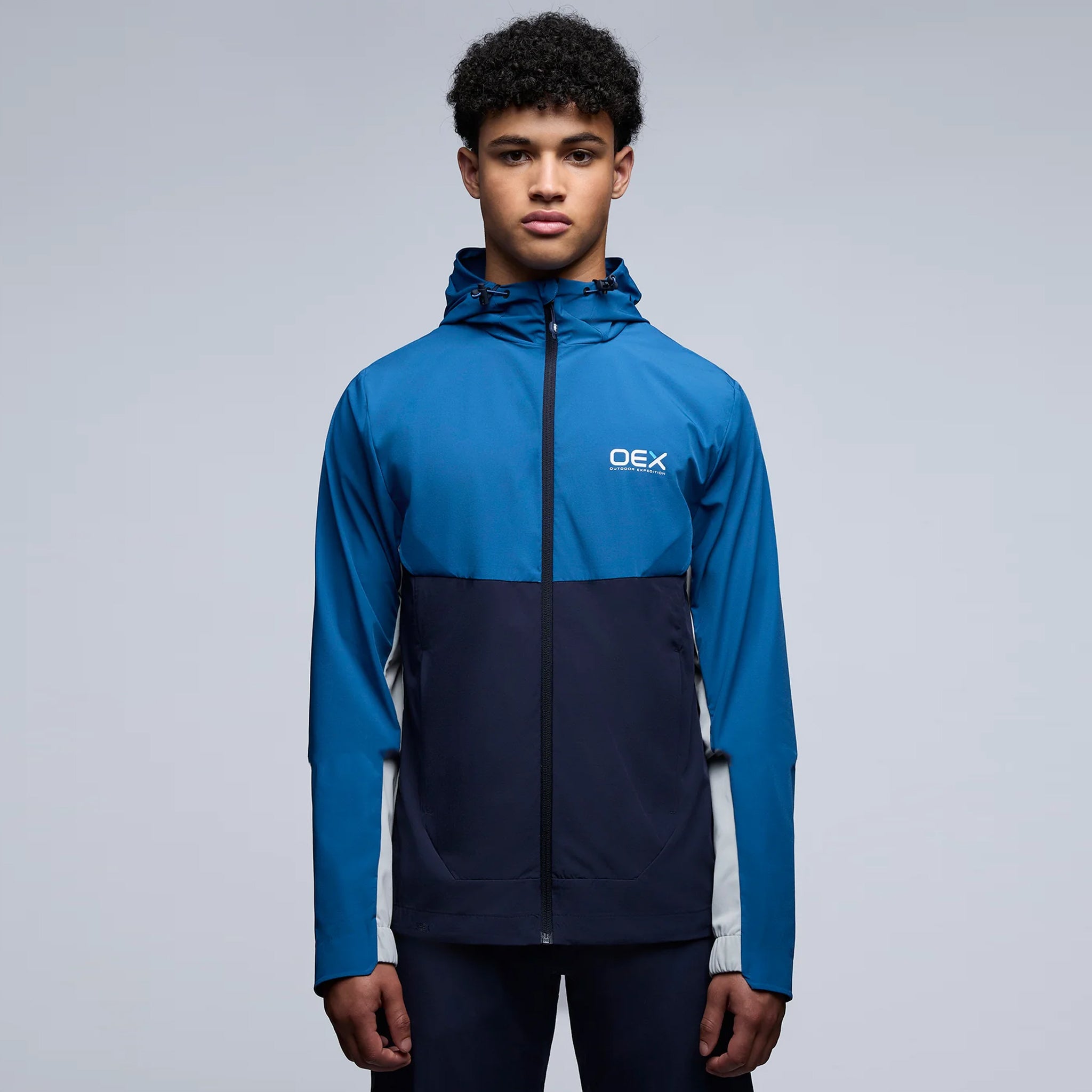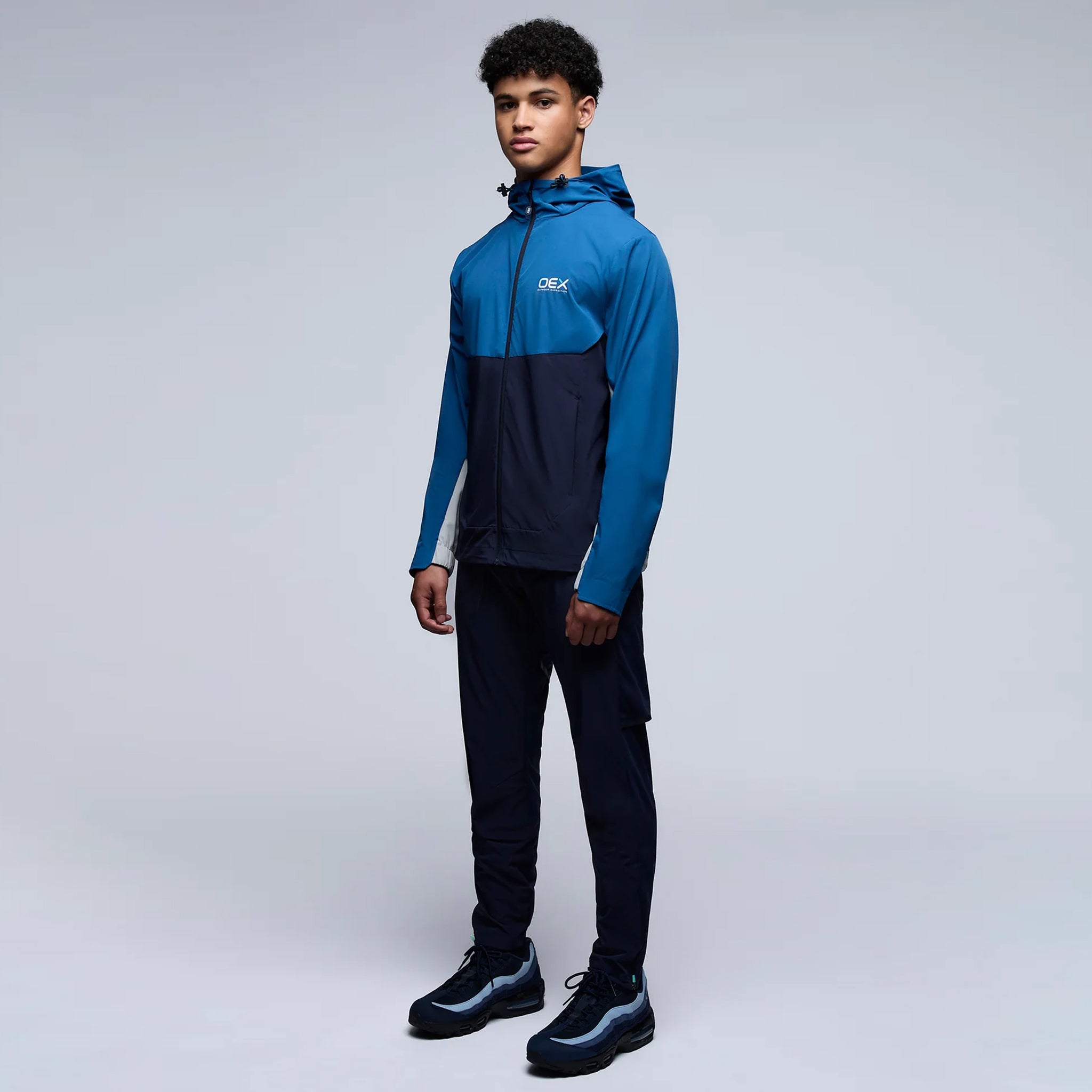 The Pental Zip Up Track Jacket by OEX offers a true-to-size regular fit in a sleek 2 tone blue. Designed for comfort and practicality, it features a high neck, fixed hood, and long sleeves with elasticated cuffs. The zip fastening and side seam zip pockets provide convenience, while the lightweight polyamide-elastane blend ensures easy movement. Machine washable for simple care, this track top is available in sizes S to XL. Make sure to pick up the matching bottoms.