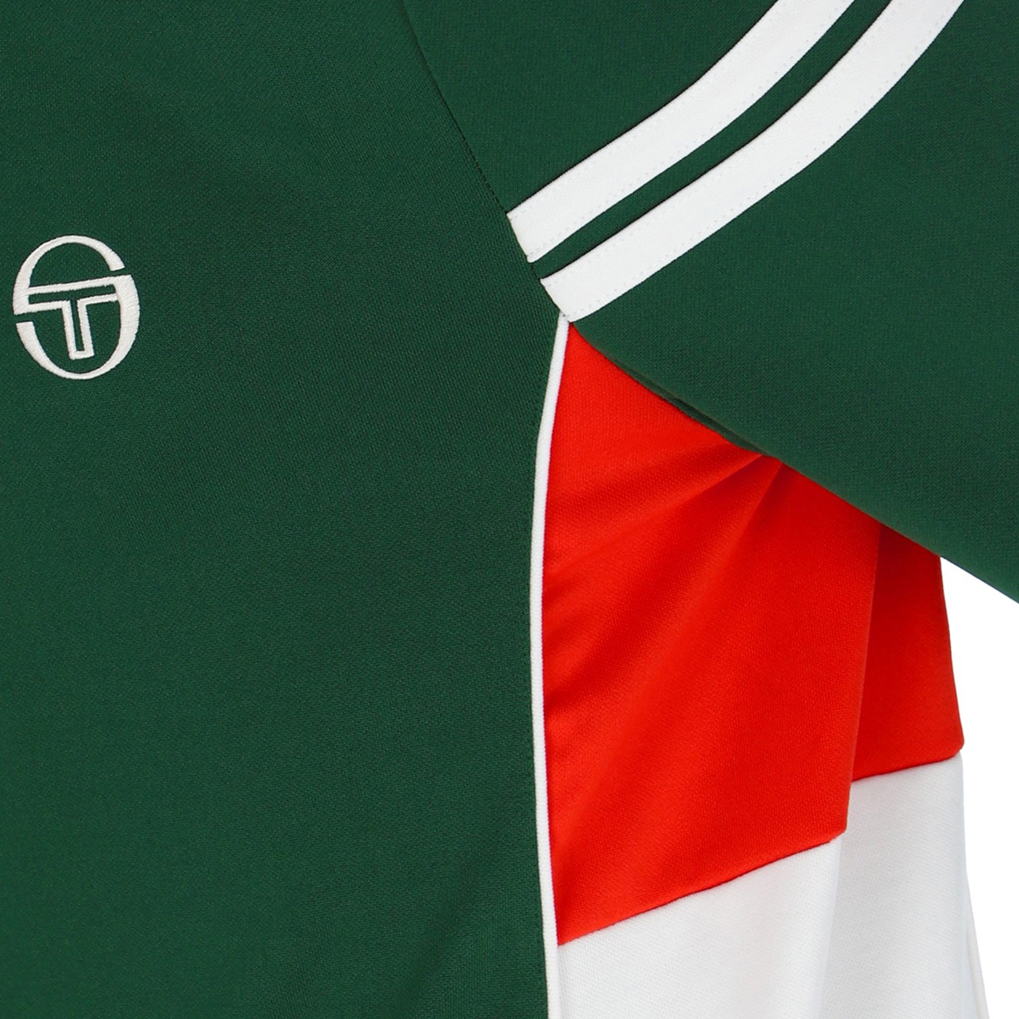 The New Mambo Track Top from Sergio Tacchini updates a classic 80s design with a modern twist. Crafted from lightweight, breathable poly-cotton, it features a warm autumnal shade highlighted with colour-blocking details. The structured 70s-inspired funnel neck and ribbed trims offer a comfortable, stylish fit. Practical elements include a smooth zip front and open welt handwarmer pockets, perfect for everyday wear. Finished with signature Sergio Tacchini stripes, this track top blends vintage style with contemporary comfort effortlessly.