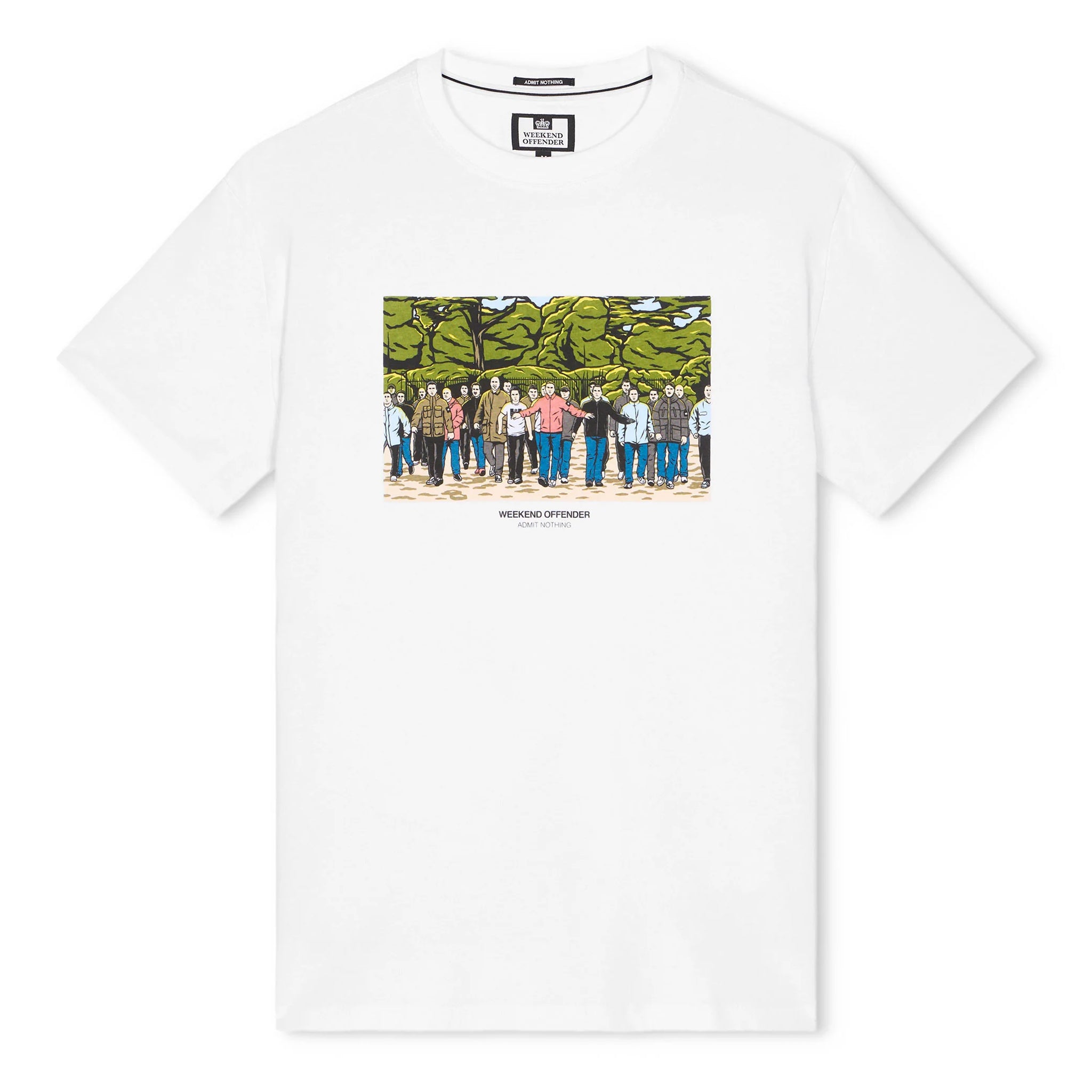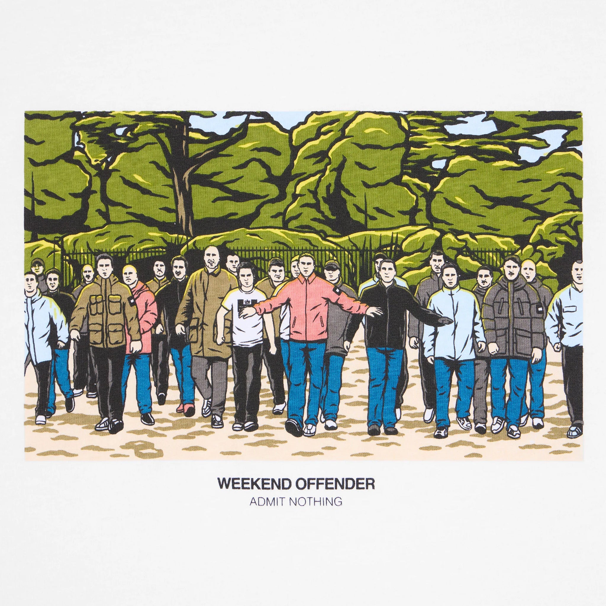 The GSE Graphic T-Shirt features a bold, detailed print depicting a classic football firm fight scene reinvented with Weekend Offender attire. Crafted from 100% combed cotton single jersey fabric with a twisted yarn construction, it offers a comfortable, sturdy feel at 200gsm weight. The ribbed neck enhances the fit and comfort, making this tee perfect for everyday wear while expressing your unique style with a strong graphic statement.