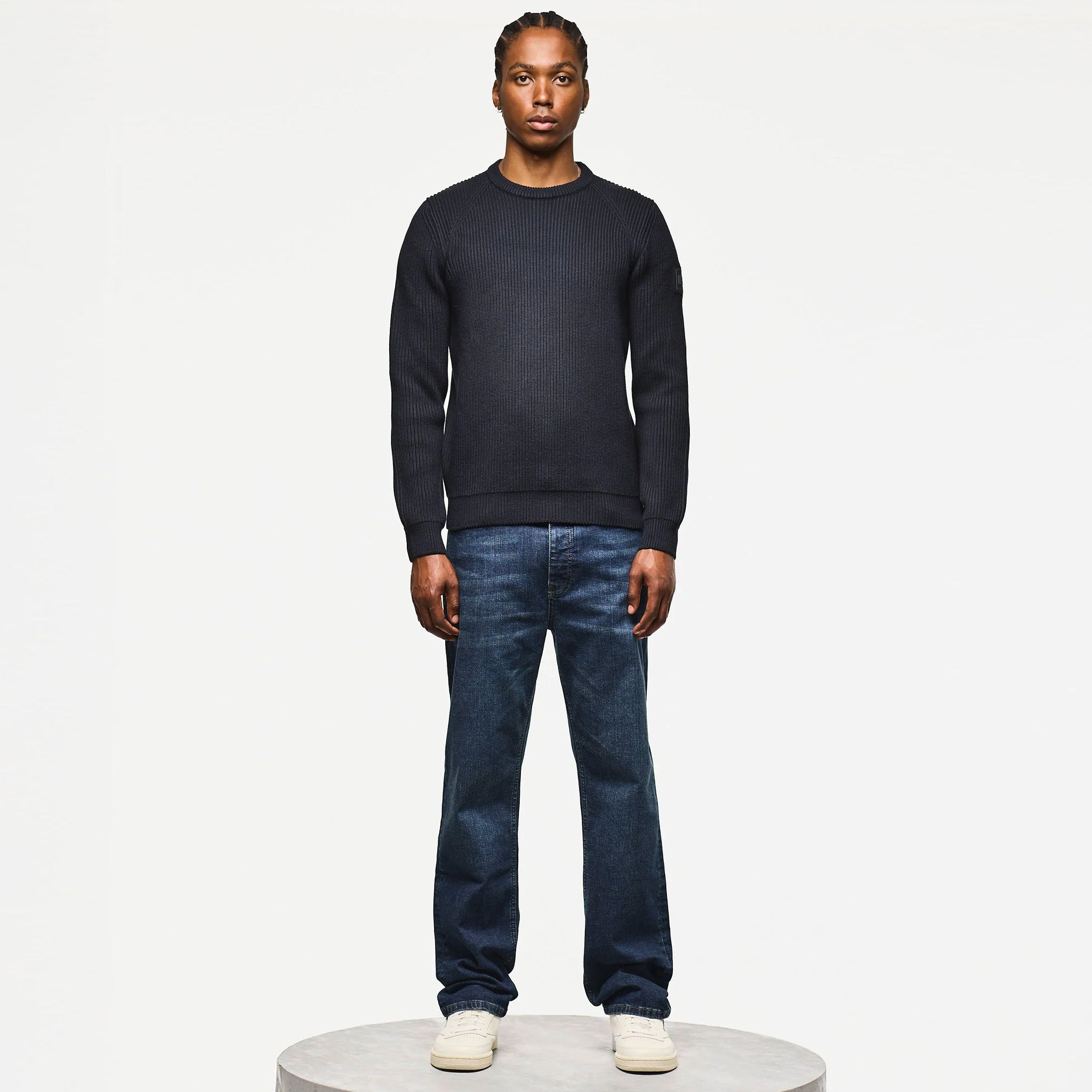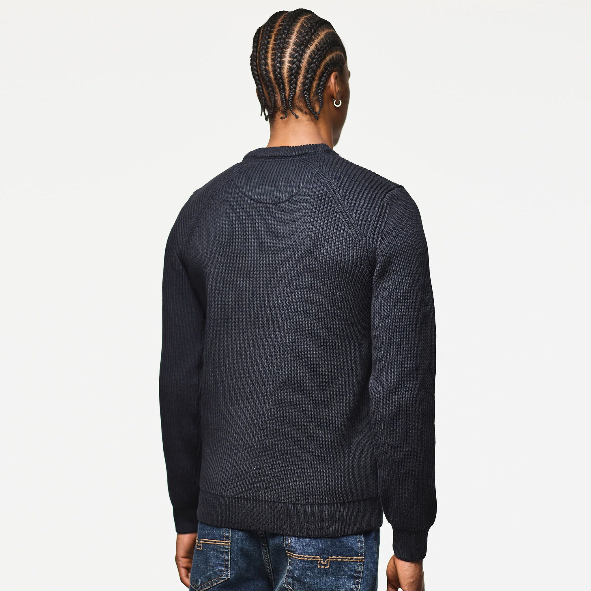 The Morello Rib Knit Jumper blends comfort and style with its chunky 7-gauge fisherman rib knit made from a soft cotton blend. Featuring rib detailing on the shoulders and armholes, along with a classic crew neck and rib trims, it offers a flattering fit and cozy feel. A subtle inner neck stripe and a WO rubber badge on the sleeve add refined touches, making this jumper an ideal choice for everyday wear that supports both warmth and ease.