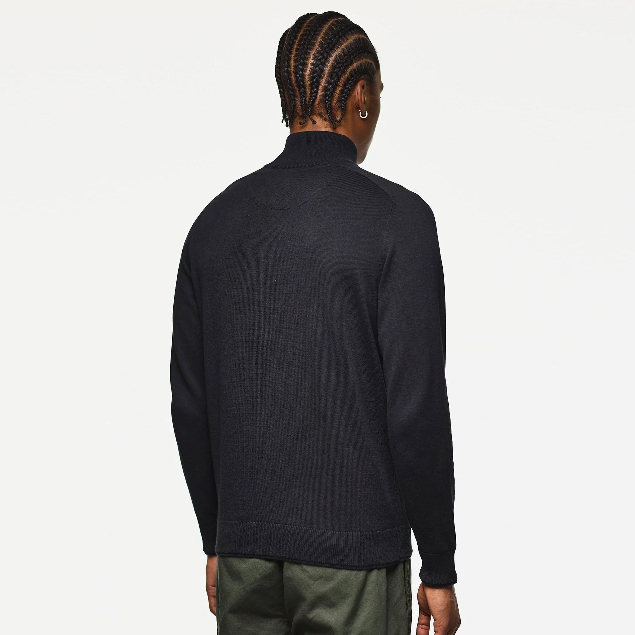 The Pierre Quarter Zip Jumper offers comfort and style with its soft, 100% cotton 14 gauge jersey knit fabric. Designed with fully fashioned armholes and fine rib trims featuring subtle stitch details, it provides a flattering fit and refined look. The covered 1/4 zip enhances versatility, while the small WO badge on the chest adds a touch of understated branding. Ideal for layering or wearing alone, this jumper combines everyday wearability with thoughtful design details.