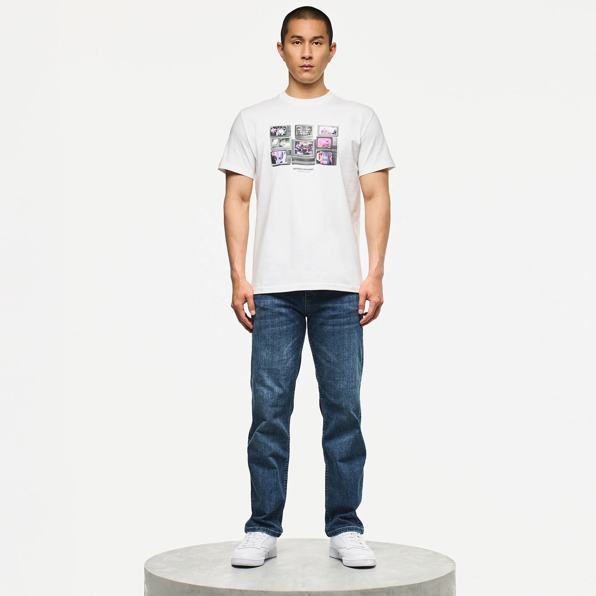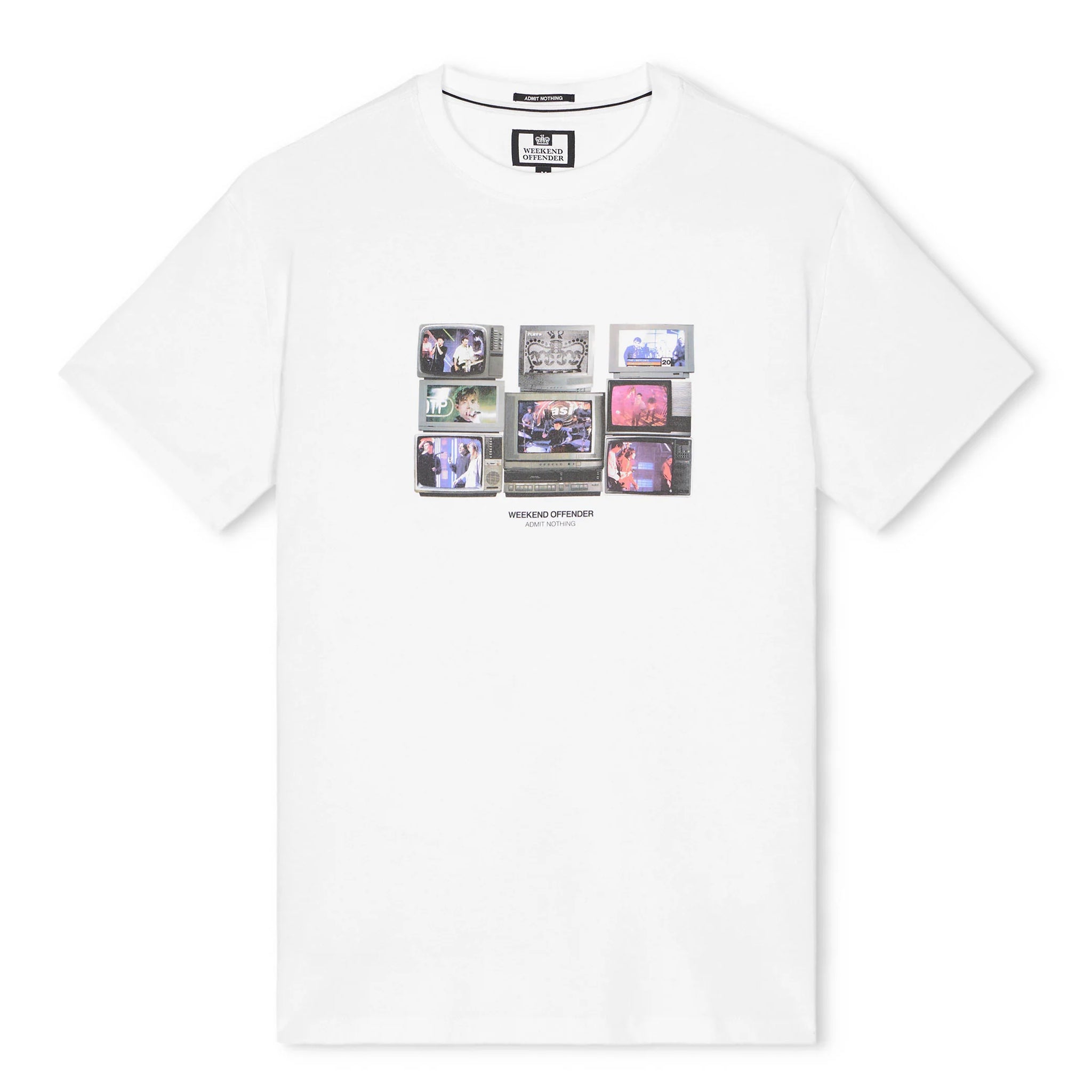The Vision Graphic T-Shirt combines style and comfort with a bold, surreal print featuring stacked retro TVs forming the Weekend Offender prison logo. Made from 100% combed cotton jersey, its soft, breathable fabric ensures all-day ease. The large front chest graphic showcases iconic band moments, making it perfect for expressing your musical passion while enjoying a comfortable fit supported by a ribbed neck detail.