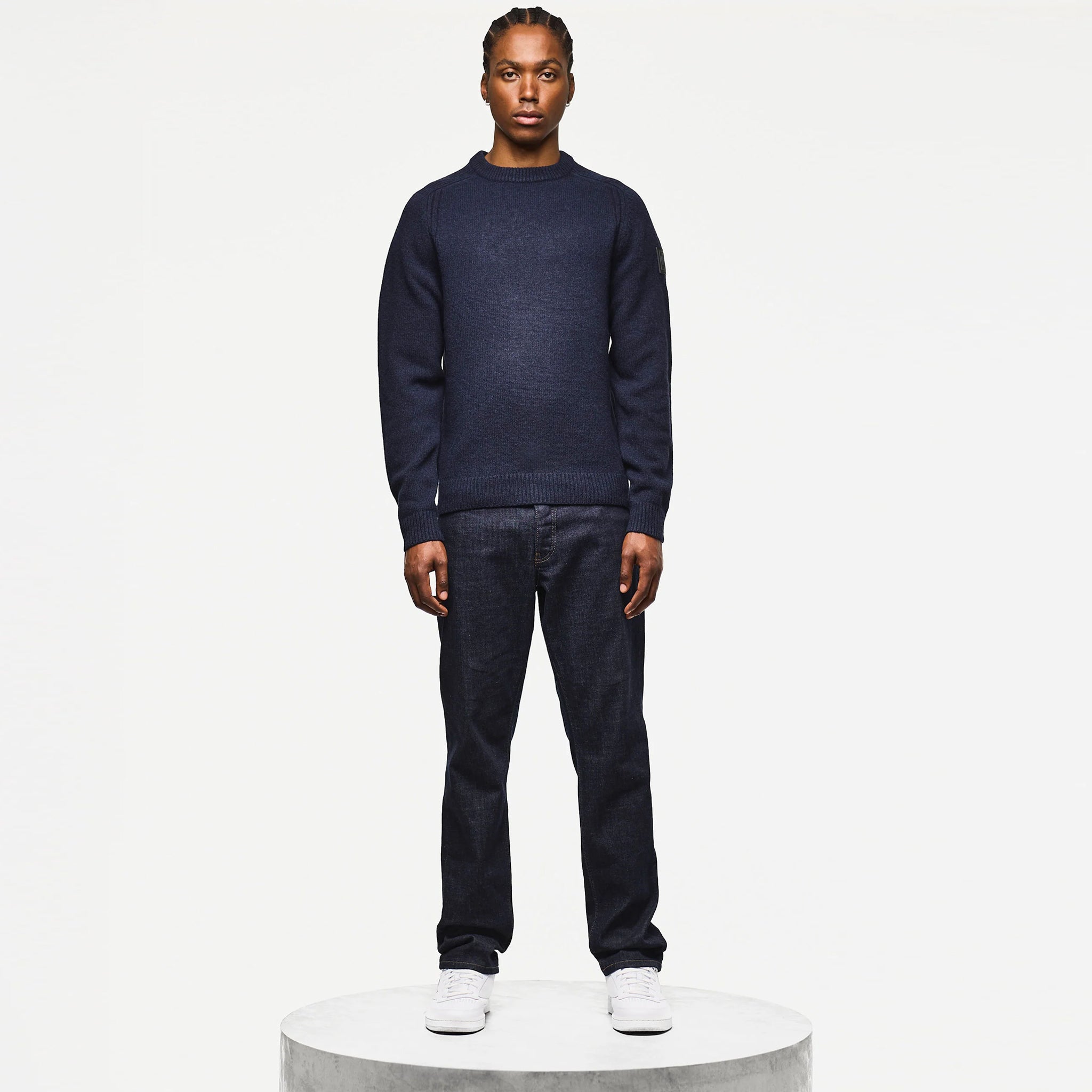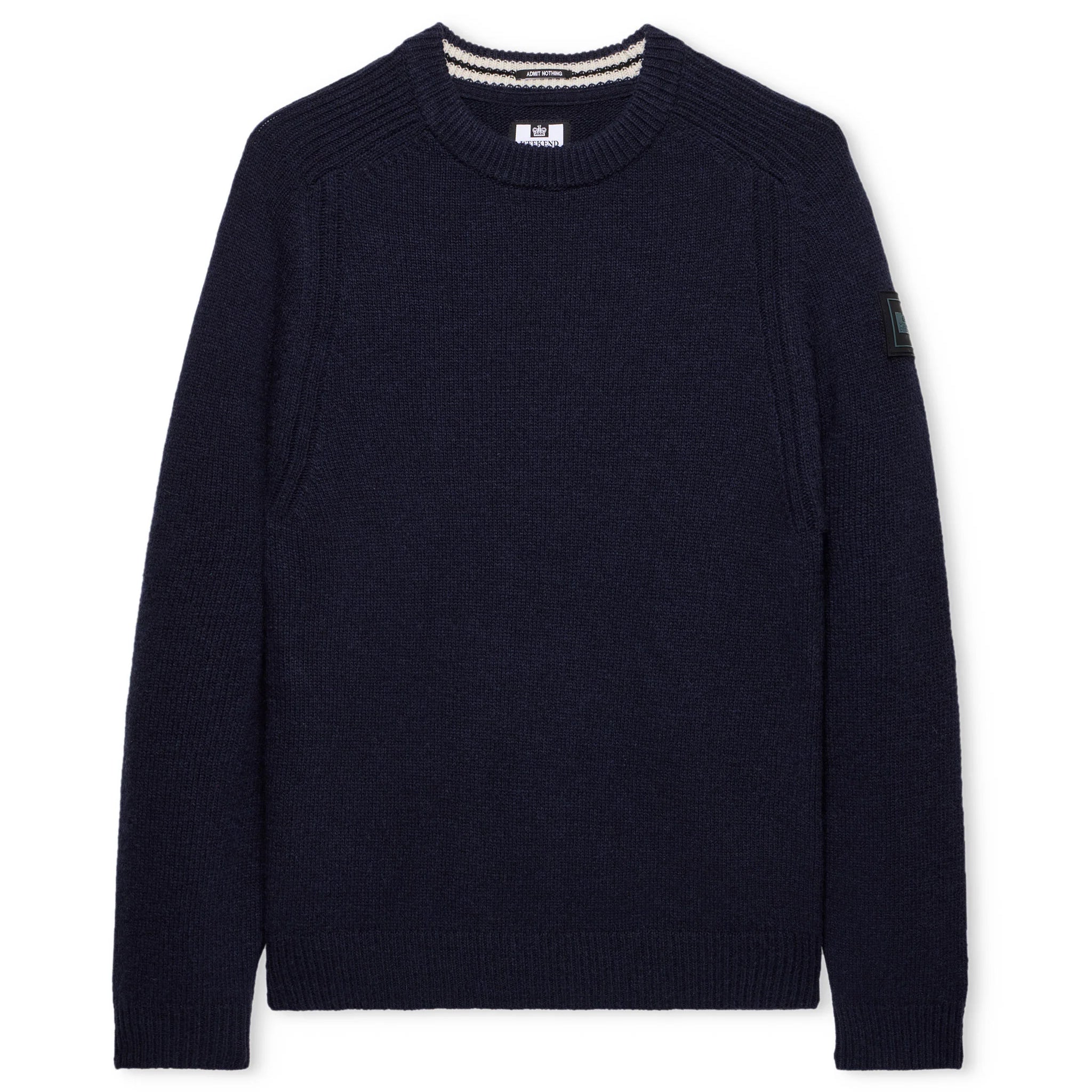 The Zagreb Wool Jumper combines soft, natural warmth with premium craftsmanship. Made from 80% wool and 20% nylon, this 5-gauge jersey knit provides comfort and durability. Featuring a fully fashioned raglan shoulder with rib details, a classic crew neck, and neat rib trims, it ensures a flattering fit. Additional touches like the inner neck stripe and a distinctive WO rubber badge on the sleeve offer subtle style. Ideal for keeping cozy while maintaining a refined look throughout your day.