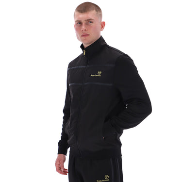 The Sergio Tacchini Cassio Track Jacket in Black is a sleek sportswear-inspired layer that brings together comfort, practicality and timeless casual style. An embroidered gold Sergio Tacchini logo on the chest gives the jacket its signature premium touch, while the branded zip fastening adds a clean and functional detail to the front. Open pockets provide everyday convenience, making the jacket ideal for relaxed daily wear, commuting or travel. Elasticated cuffs and an elasticated hem help create a comfortable and secure fit, ensuring this Sergio Tacchini track jacket keeps its shape while remaining easy to layer. The Black colourway gives the Sergio Tacchini Cassio Track Jacket a versatile and understated finish that pairs effortlessly with jeans, joggers or matching track bottoms. Whether worn as part of a laid-back weekend look or as a practical everyday top layer, it offers a strong balance of sporty heritage and modern wearability. Comfortable, easy to style and unmistakably Sergio Tacchini, this jacket is a reliable staple for men who appreciate classic track-inspired design.